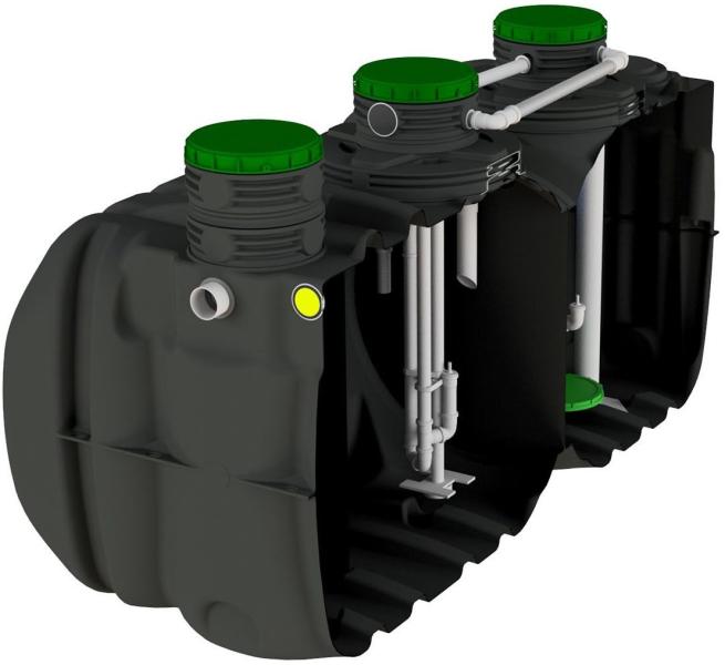 • Les eaux usées domestiques provenant du bâtiment entrent dans un premier compartiment où elles subissent un prétraitement. Ce prétraitement est assuré par l'activité des bactéries anaérobies épuratrices et la sédimentation des matières solides.