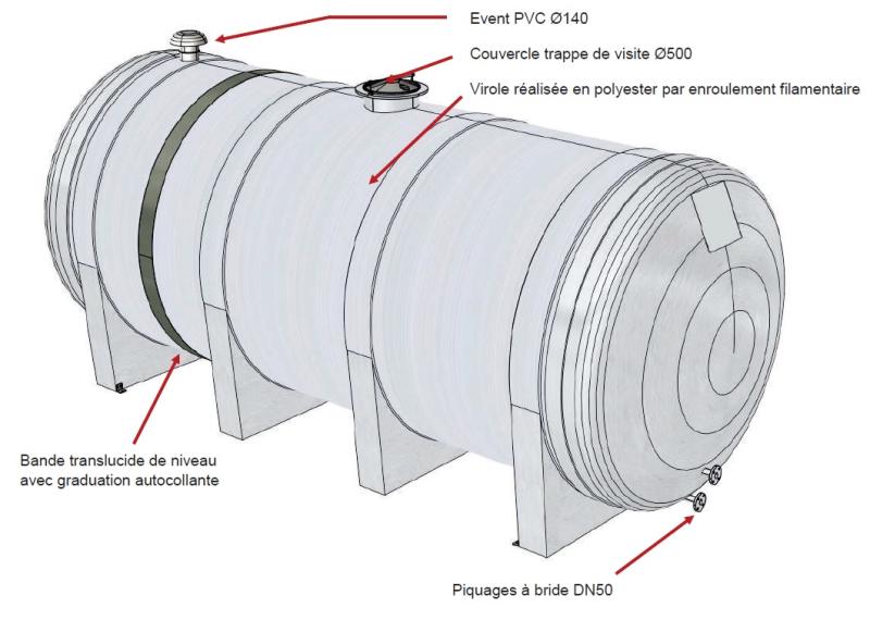 Cuve de stockage engrais liquide horizontale polyester Rousseau