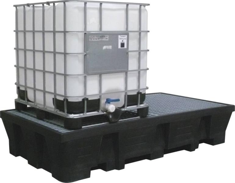 Bac de rétention 1000 L PE format XXL pour 2 IBC avec caillebotis acier galvanisé, conçu pour le stockage sécurisé des liquides.